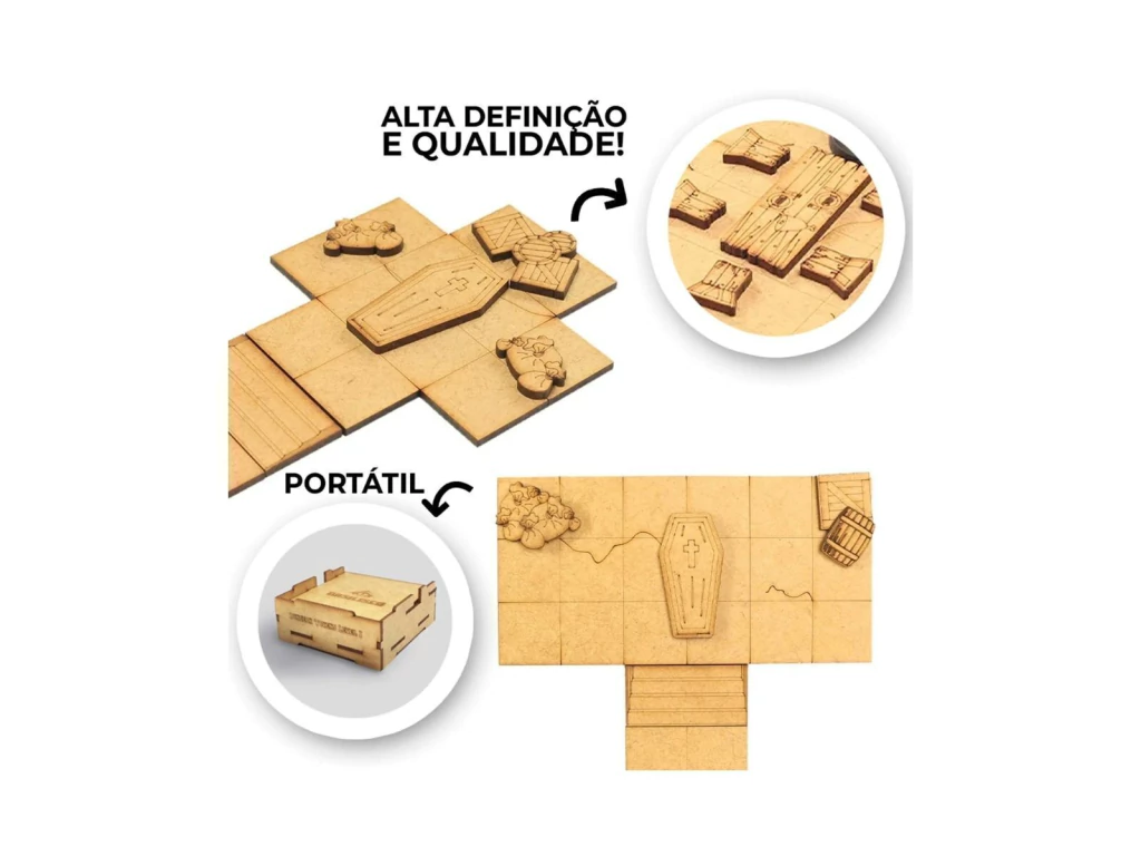 O produto foi desenhado para que esse processo seja muito simples. Escolha as peças que preferir para montar seu cenário e as distribua em um grid. Esse produto faz parte da coleção do Mercado RPG de tokens em MDF modular e cada level representa um produto novo para você colecionar e aprimorar a sua aventura.